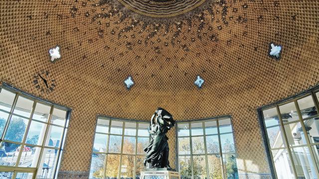 The further we go, the more the romantic charms of this gallery make us fall in love. At its center, the Rotunda makes an impact, and causes us to fall in love at first sight. The Statue of the Verseuses, which represents two women pouring water, seems to soar towards the sky. We look up to admire the equally splendid copper dome that protects these graceful women from the whims of the sky.